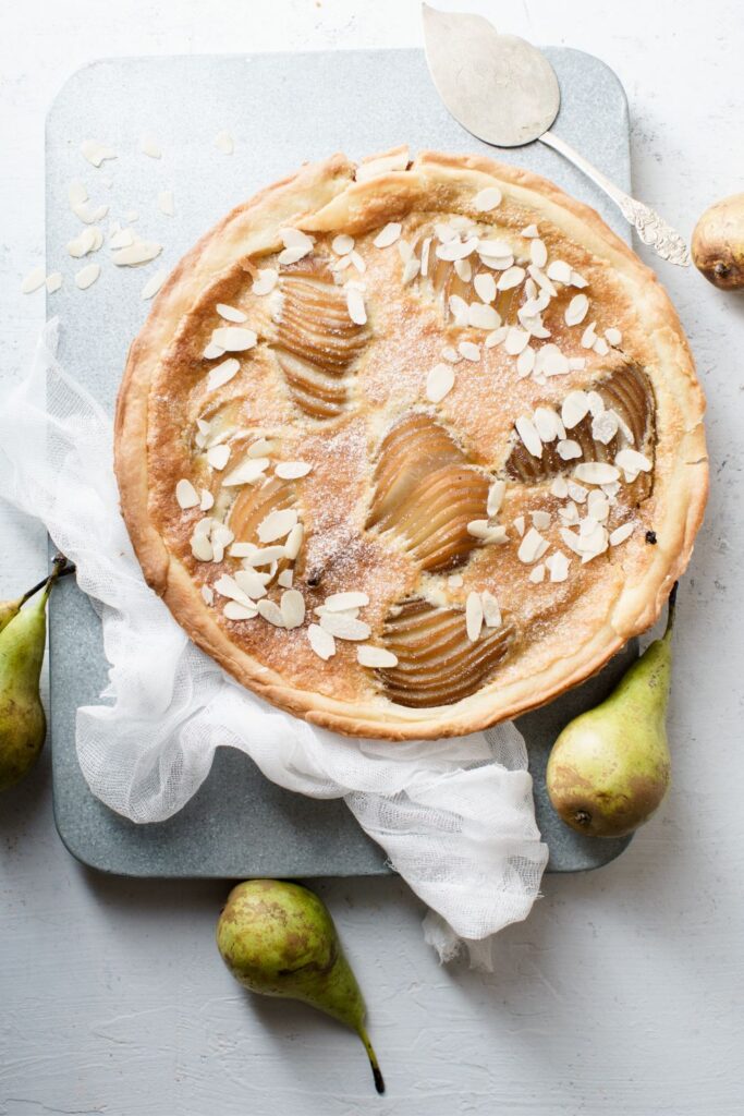 Buttery crust, warm almond frangipane, and poached pears — this tart smells like a French bakery and tastes even better.