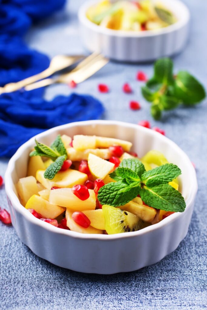 This salad keeps well in the fridge for 2–3 days, tightly covered. The flavours get even better by day two, but some fruits (like bananas or strawberries) might start to go a bit soft.