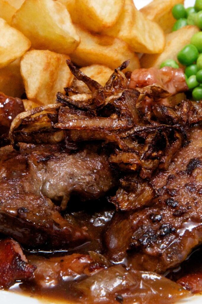 A comforting classic with tender liver, smoky bacon, and rich gravy — perfect for chilly evenings and hearty appetites.