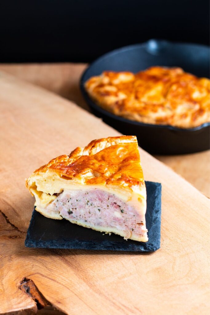 Golden, flaky pastry wrapped around a rich, savoury mix of pork, beef, and mash — James Martin’s pork pie is rustic British comfort at its best.