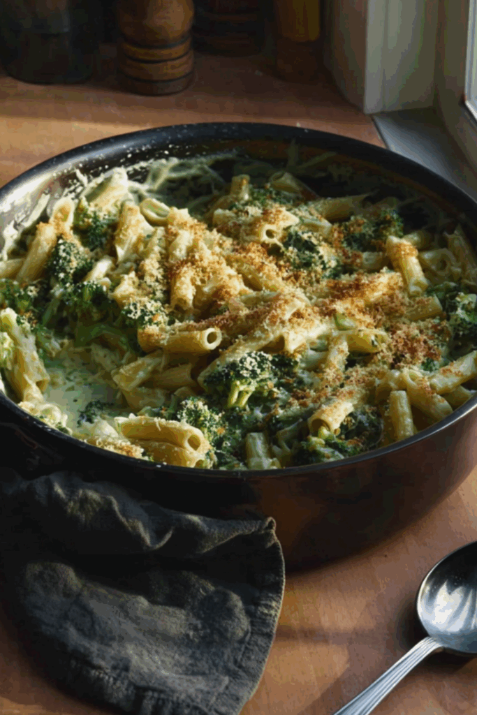 A plant-powered comfort bake with a creamy oat milk sauce, golden cheesy topping, and a stealthy green boost from spinach and broccoli.