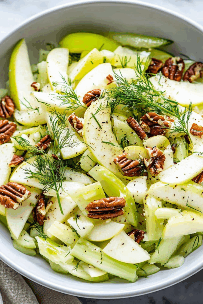 There’s something about biting into a cold, crisp apple that instantly lifts your mood — especially when it’s mingled with fennel’s soft anise crunch and a creamy dressing that’s just sweet enough to feel a bit cheeky. This apple salad is like your favourite cashmere jumper: light but cozy, classy but not trying too hard.