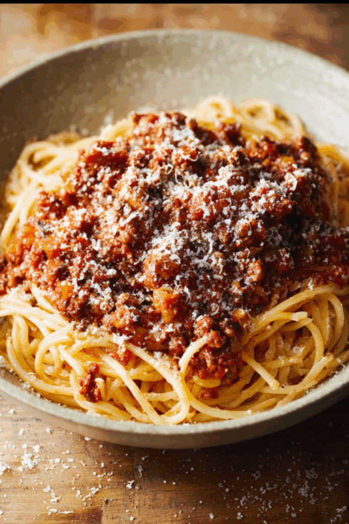 You know that smell—the one that drifts through the house slowly, hour by hour, turning everyone into starving, sniffing zombies? That’s this bolognese. I started it around noon on a grey Saturday with no real plan other than “make something that cooks itself while I do laundry and scroll aimlessly.” And by 3pm, it was bubbling away so beautifully I nearly cried into the spoon.