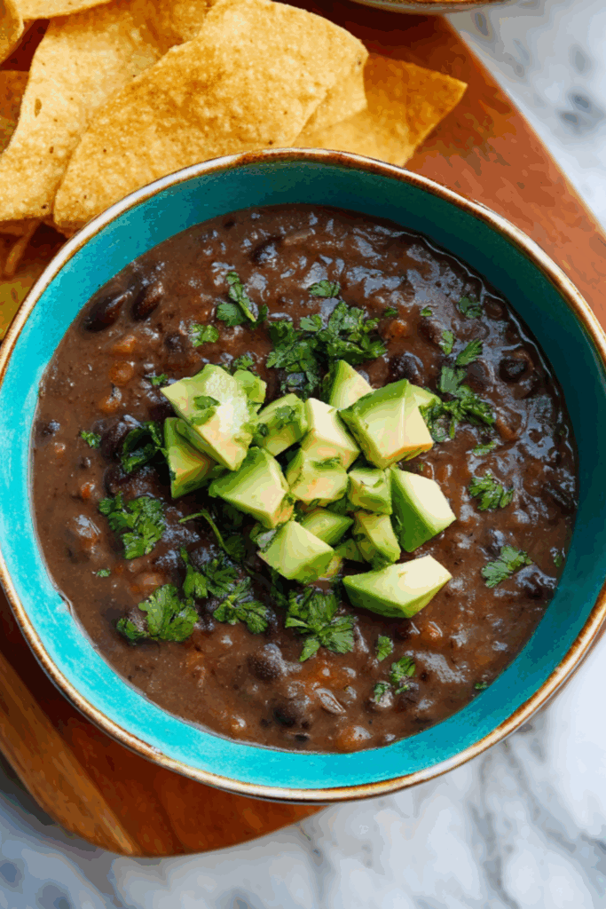A bold, warming black bean soup with smoky cumin, soft veggies, and a creamy blended finish — all made from pantry staples.