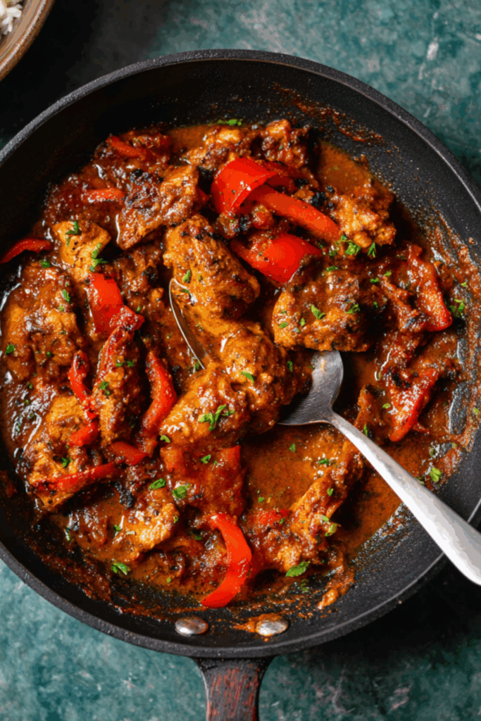 There’s something about the smell of cumin hitting hot oil that makes a kitchen come alive. It’s like a signal — something warm and real is about to happen. I remember the first time I threw this together, just trying to use up a couple of bell peppers and a tray of chicken thighs. I wasn’t aiming for much, but it turned into the kind of dinner where you scrape the pan clean with a bit of naan, just so none of that sauce goes to waste.