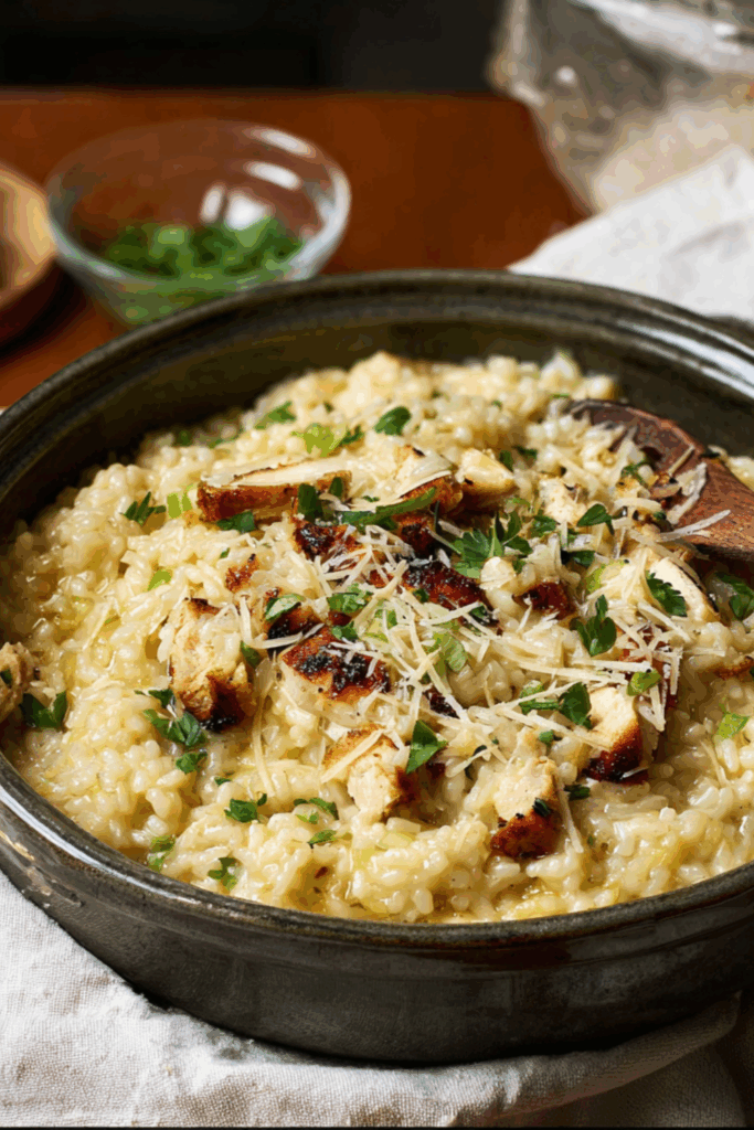 A creamy, cozy risotto packed with sweet leeks, golden chicken, and melty Parmesan — made for slow evenings and second helpings.