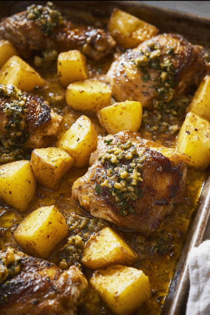 The chicken gets beautifully golden, the potatoes go all tender with crunchy bits where they hit the pan, and that lemon-olive salsa? Honestly, I could eat it with a spoon. And have. There’s something almost Mediterranean-holiday-ish about it, even if you’re just sitting in your kitchen with your socks mismatched and your cat judging you from the corner.