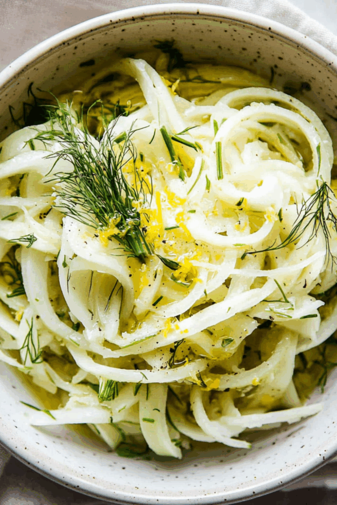 A crisp, zesty fennel salad tossed with lemon, olive oil, and fennel fronds — the perfect cooling side for rich mains or warm days.