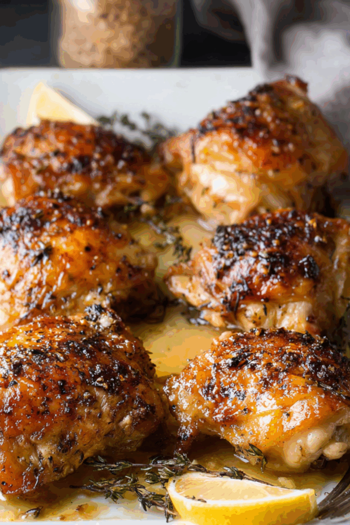 Golden, lemony roasted chicken with crispy skin and savoury pan juices — rustic, juicy, and packed with Mediterranean warmth.