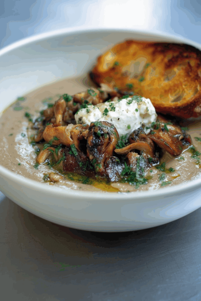 A rich and creamy mushroom soup with deep savoury notes, silky texture, and simple ingredients — perfect with warm crusty bread on a chilly day.