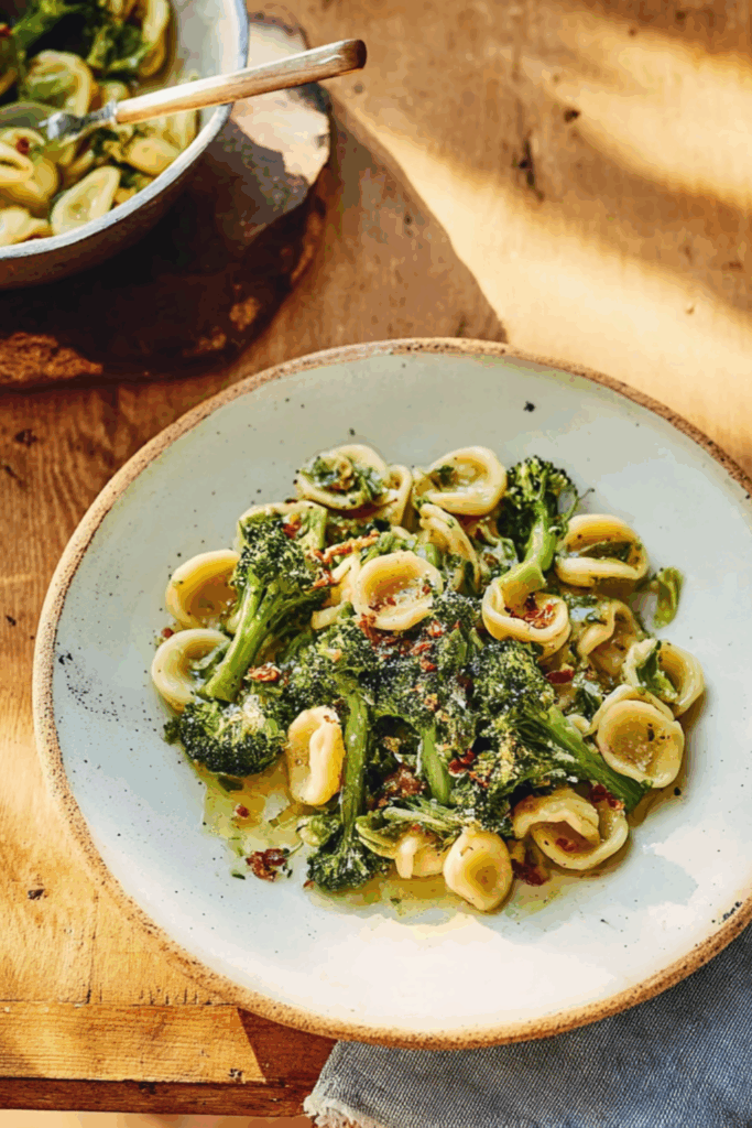I remember the first time I made this, I was halfway through cleaning out the fridge and found two slightly sad heads of broccoli. The anchovies were dusty at the back of the cupboard (don’t judge), and I had just enough orecchiette to make it work. I didn’t expect much, but it hit all the right spots — salty, spicy, earthy, and just hearty enough to make it feel like a full meal.