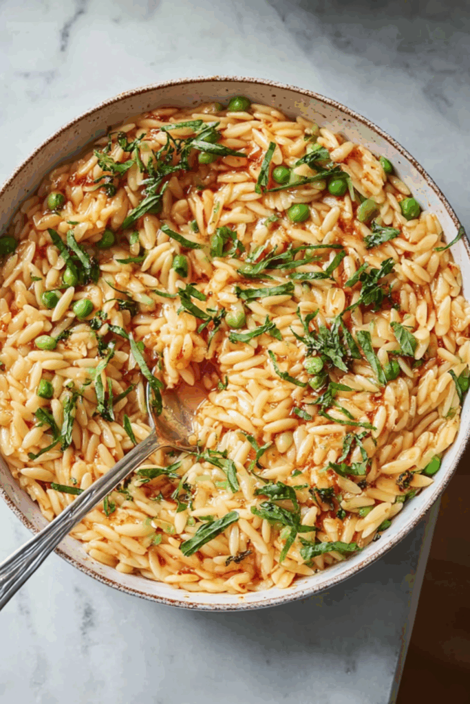 Right — I wasn’t even planning on making anything fancy. I just had a drawer full of cherry tomatoes that were about to turn, a few spring onions drooping in the back of the fridge, and a sad bunch of herbs I’d meant to use three dinners ago. But here we are — and let me tell you, this orzo pasta? It surprised me. Like, mid-bite pause, stare at the bowl kind of good.