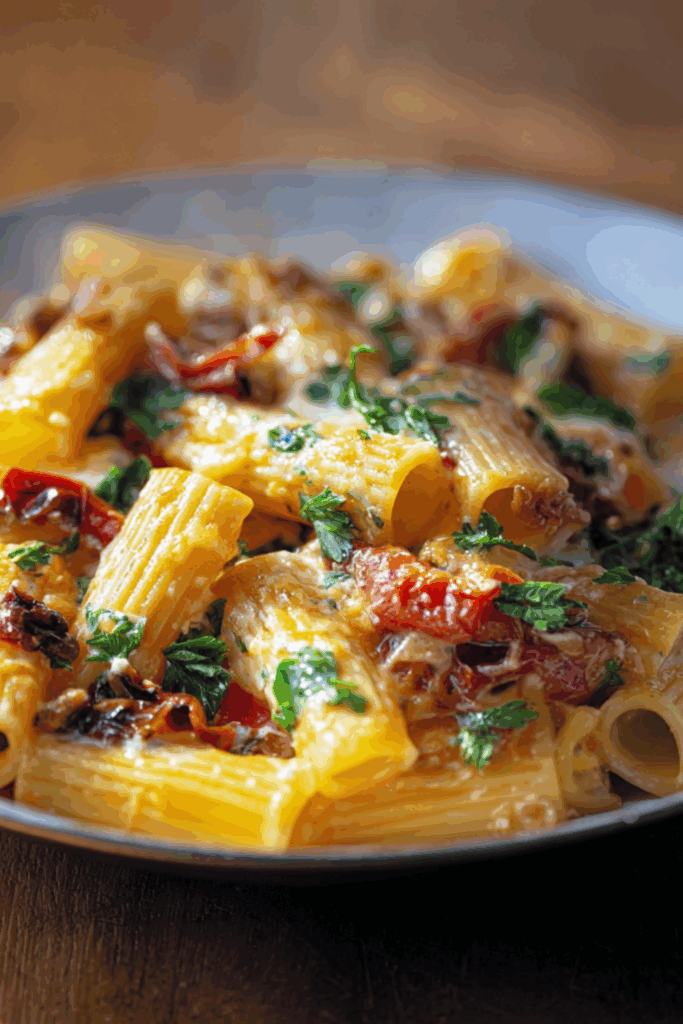 There’s something almost meditative about cooking this pasta. It’s not flashy or trendy — no viral hacks, no shouting — just the kind of dish that fills your kitchen with warmth and smells like you’ve done something kind for yourself.