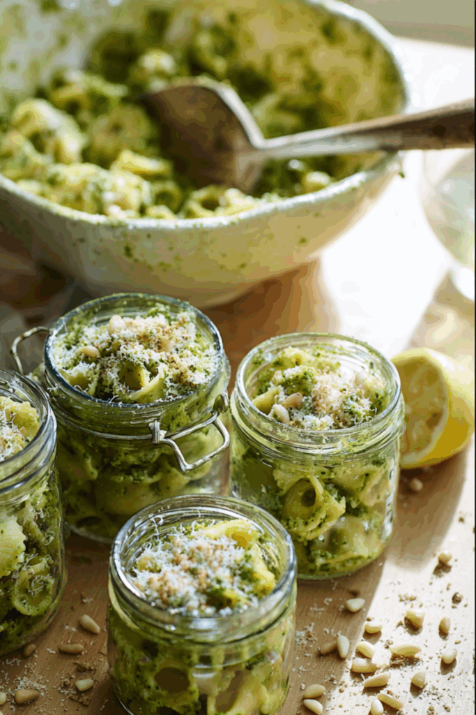 Green, creamy pesto pasta packed with peas, spinach, and lemon — picnic-ready and totally addictive.