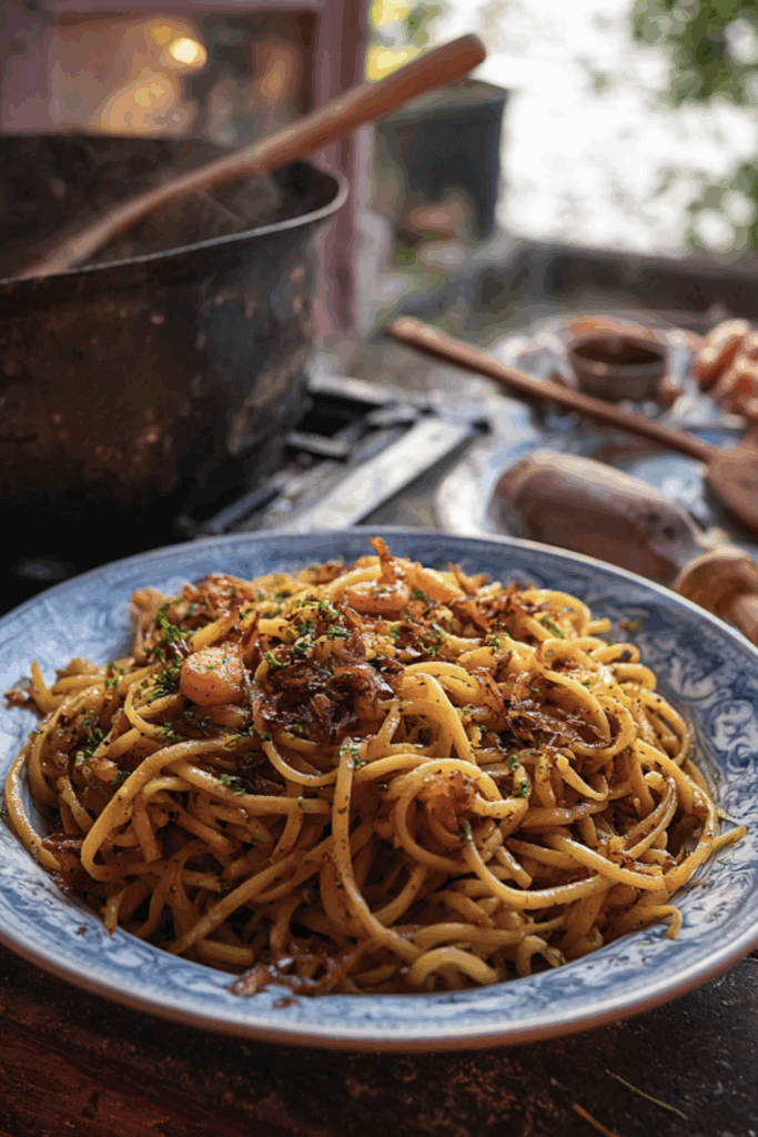 There’s heat and depth from the anchovies and cinnamon (don’t roll your eyes), silkiness from the prawns, and then these rogue pops of crunch from crushed pistachios that actually made me stop chewing and say “wow” out loud to no one. The saffron and vinegar thing? Wildly good. This dish feels like Sicilian sun and seaside café energy, but you’re just standing barefoot in your own messy kitchen.
