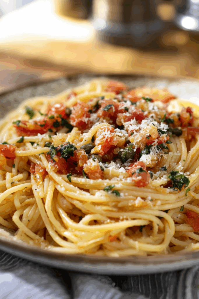 Bright, briny, and comforting — this tomato and caper pasta is weeknight magic with barely any fuss.