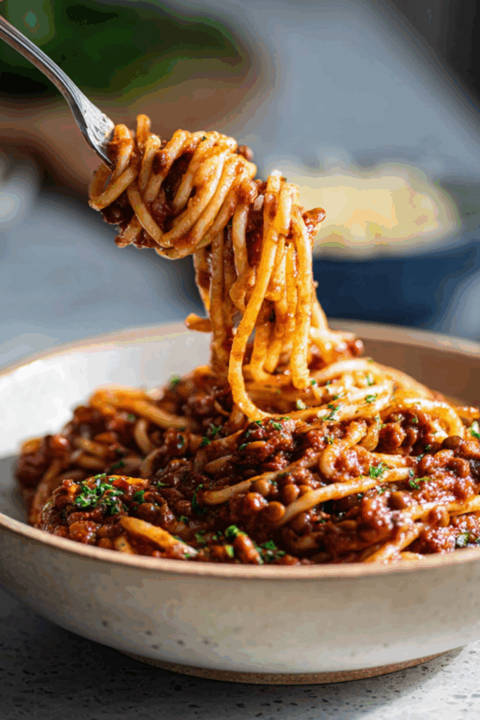 I first made this lentil Bolognese on a cold Tuesday when I was down to one onion, a stubborn tin of tomatoes, and a grumpy mood. I wasn’t expecting magic — just dinner — but as it simmered, my kitchen slowly filled with the kind of scent that makes you linger a little longer by the stove. Warm, rich, a bit earthy, and somehow cozy without needing a blanket.