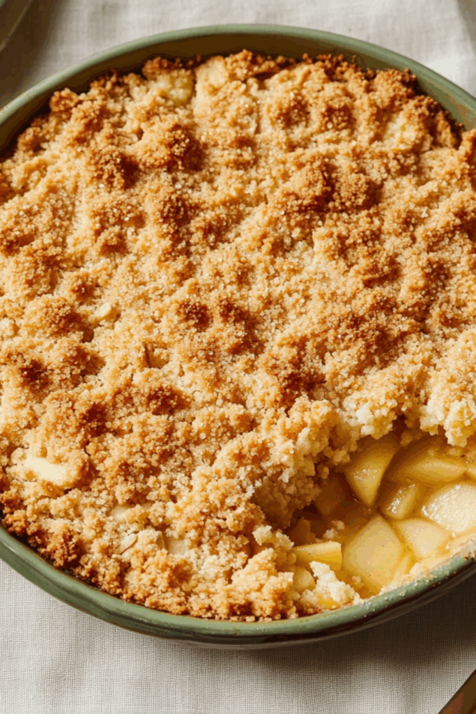 Warm, cozy apple crumble with golden almond topping and bubbling cinnamon-sweet fruit — naturally vegan and perfect for cold nights.