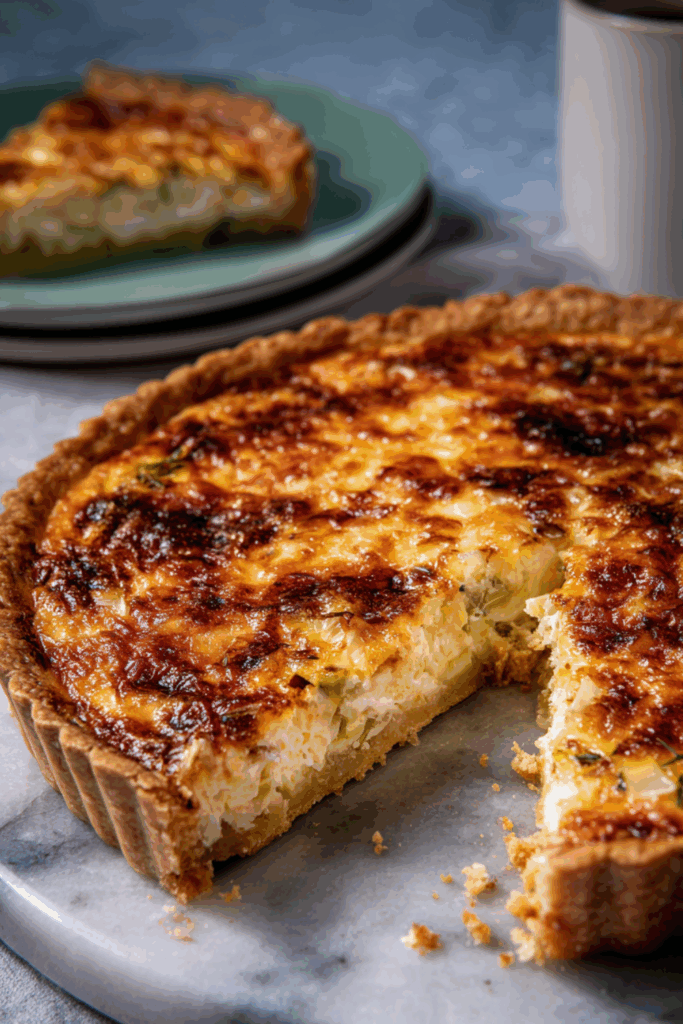 A buttery tart filled with soft leeks, creamy Gruyère, and a rich custard, all inside a golden Parmesan and chive crust—ideal for brunch or special occasions.