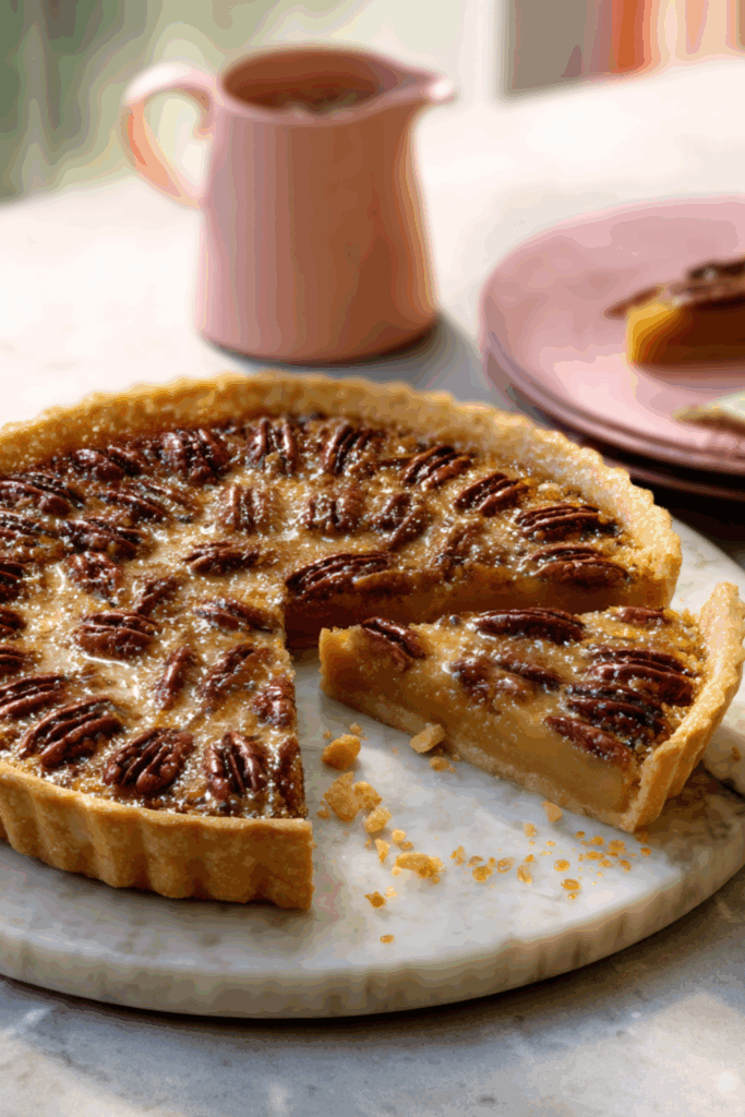 - Pour filling into baked shell, top with pecans, bake 25–30 mins until set.