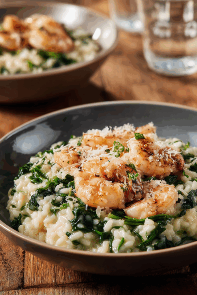 This risotto pairs well with a crisp white wine, garlic bread, or a light green salad with lemon vinaigrette. For a fancier spread, add roasted vegetables or a chilled gazpacho starter.