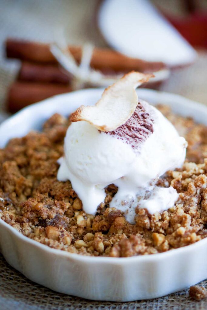 This crumble reminds me of autumn Sundays growing up — when mum would make something sweet “just because.” We’d eat it with way too much custard, probably still in our pyjamas, and nobody would judge. It’s that kind of dish. Unfussy. Soft where it should be, crunchy on top, and always more delicious than you remembered.