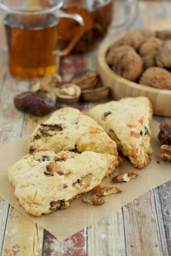Light, fluffy scones with sweet dates and crunchy walnuts — perfect for tea time or a cosy breakfast treat.