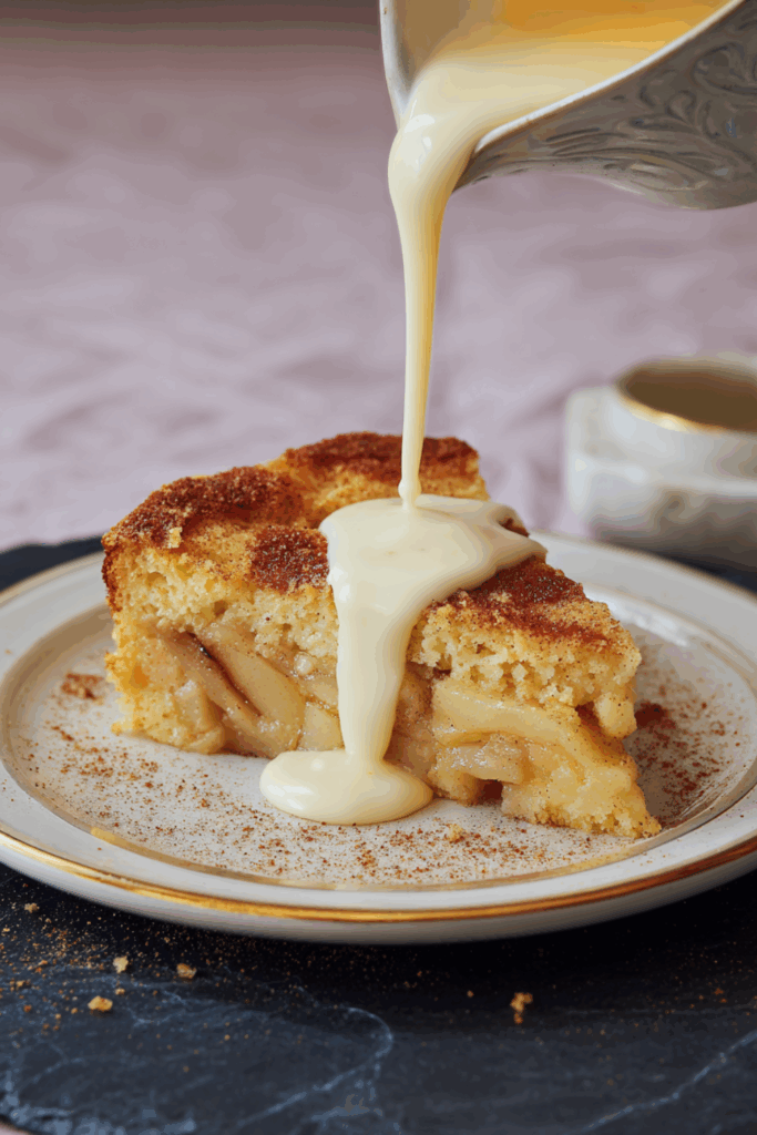 A cozy spiced cake packed with tender Bramley apples and topped with a crunchy sugar crust—best served warm with custard or cream.