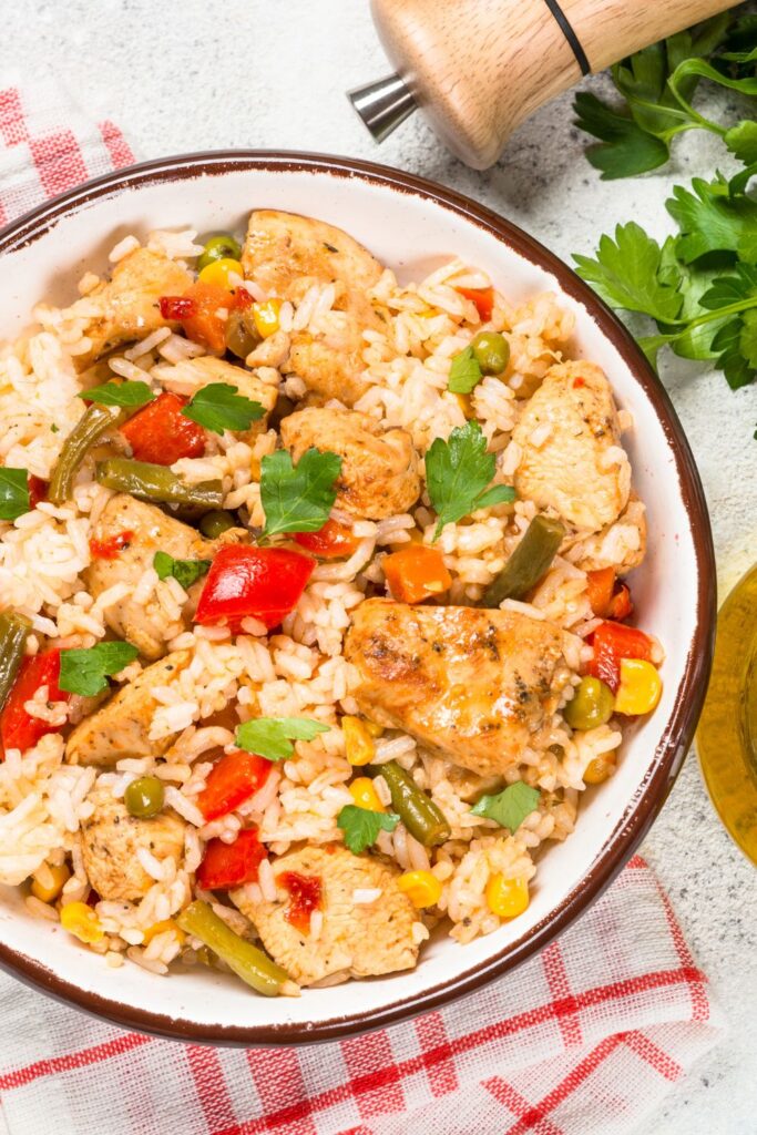 A quick, flavour-packed stir-fry of chicken, rice, and colourful veg — this satisfying dish is perfect for busy weeknights or as a vibrant centrepiece for casual dinners.
