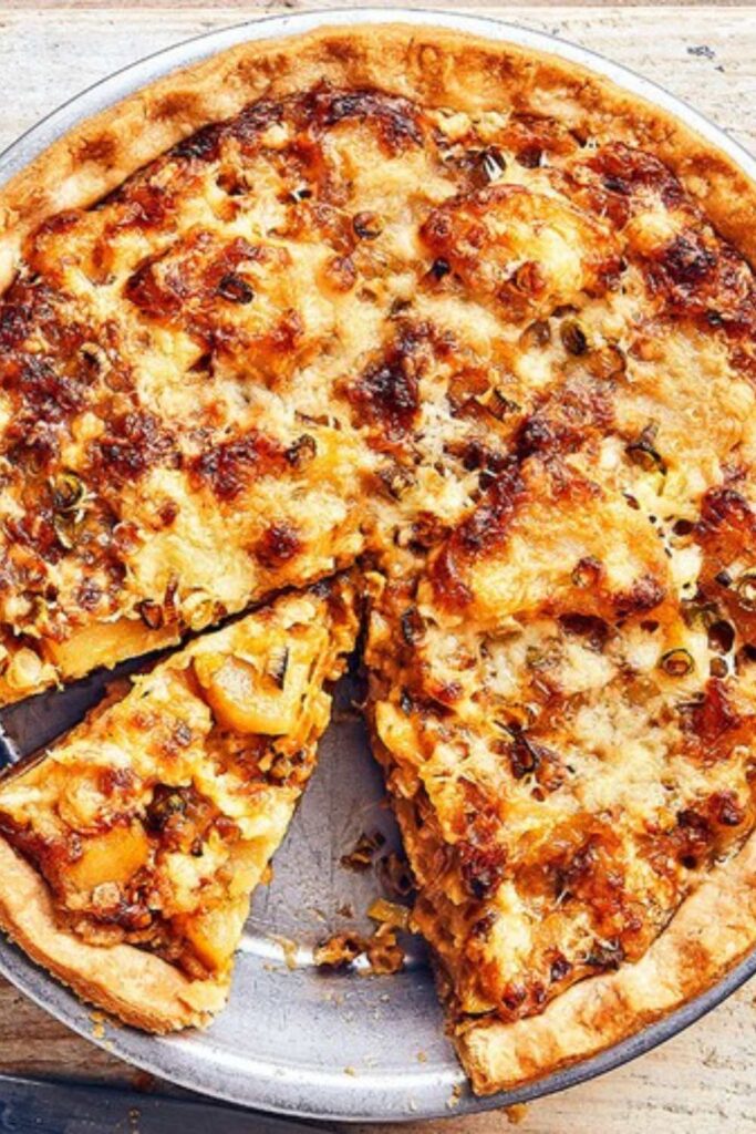 A nostalgic, savoury pie with golden pastry and a creamy mix of potatoes, sweet onions, and sharp cheddar — comfort food at its coziest.
