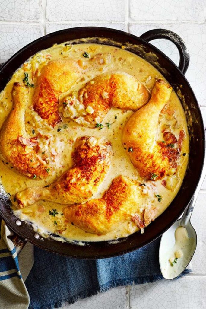 You know the kind of dish that just feels like home the second it hits the table? That’s what you’ve got with Mary Berry’s Normandy Chicken. Braised chicken legs, crispy bacon, cider and cream… it’s like someone poured the British countryside into a casserole dish.