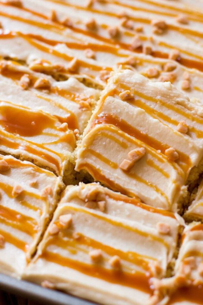A rich, buttery traybake swirled with salted caramel and topped with smooth caramel icing — simple, sweet, and irresistible.